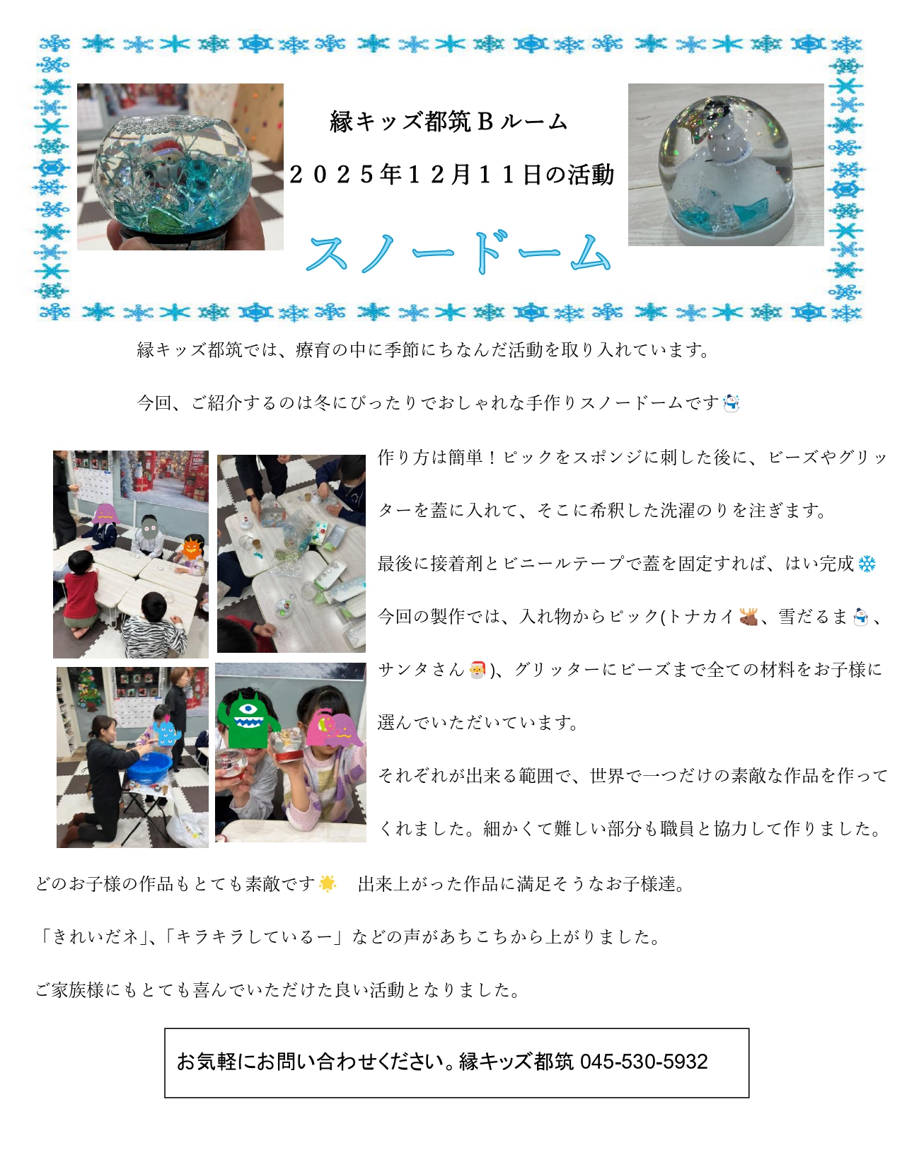 【都筑区 縁キッズ都筑】スノードーム制作