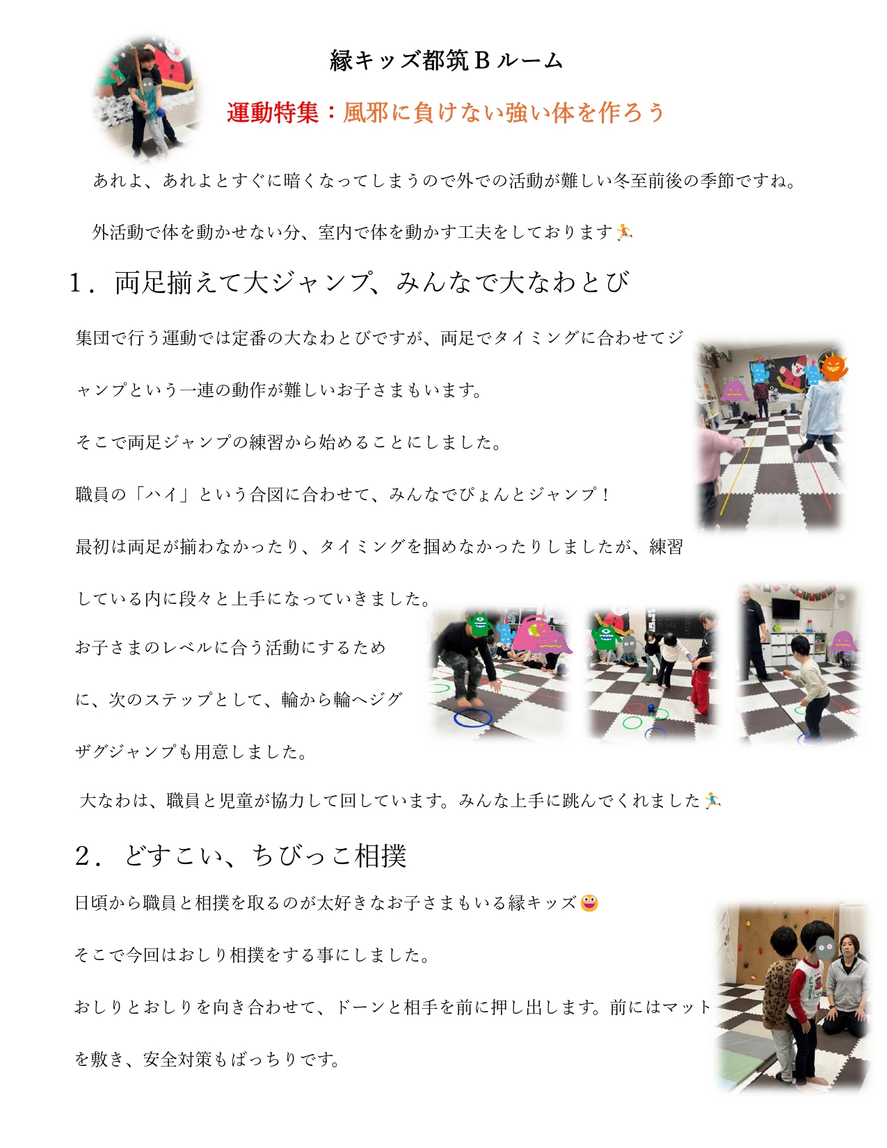 【都筑区 縁キッズ都筑】運動で強い体を作ろう!