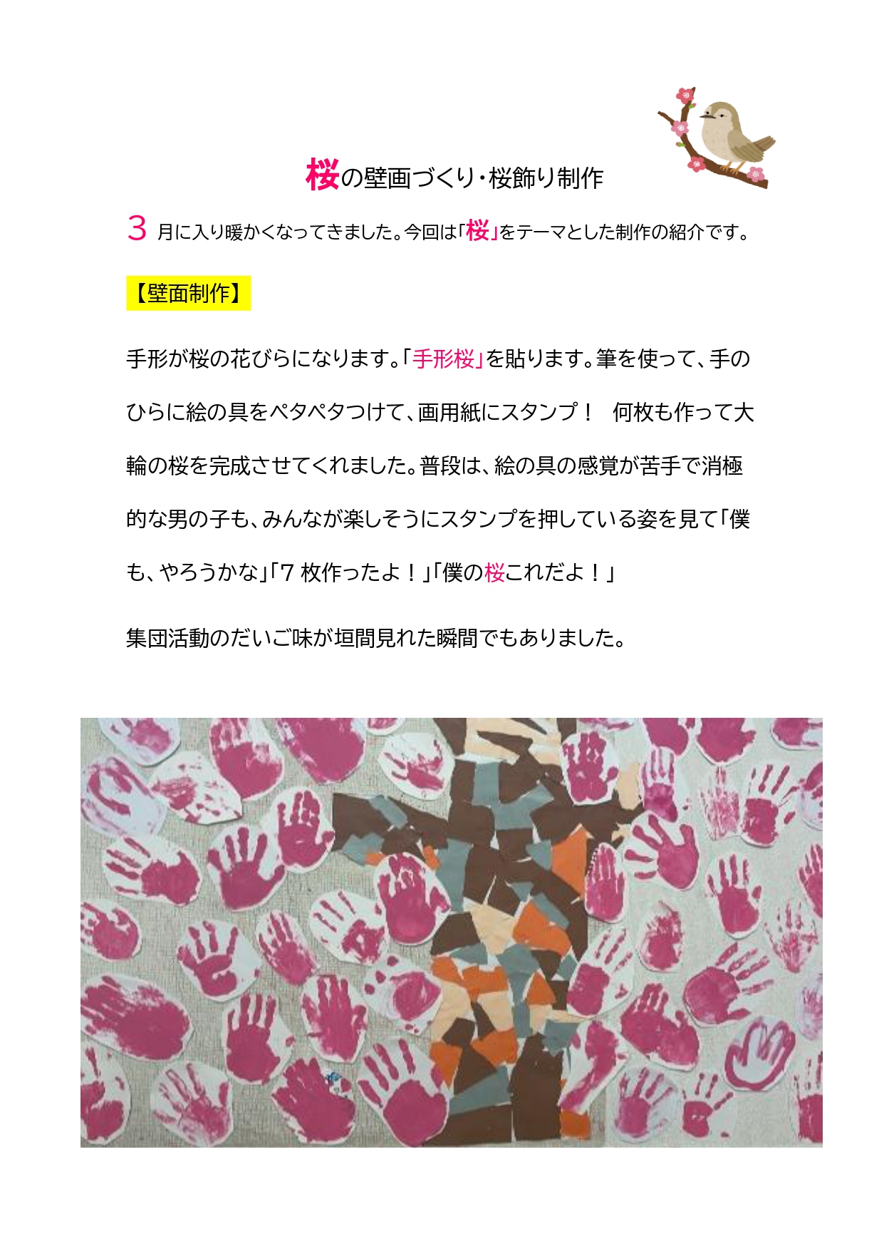 【大田区 パーチェ】桜の壁画づくり・桜飾り制作